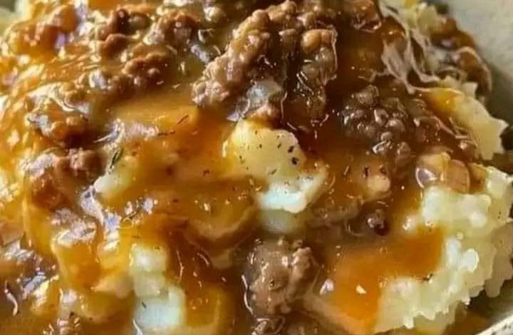 Hamburger gravy over mashed potatoes is a classic comfort dish, known for its rich, savory flavors and hearty texture. This dish, a staple in many households, offers both simplicity and the warmth of a home-cooked meal. It’s particularly beloved during colder months or on any night that calls for a satisfying dinner that feels like a hug.