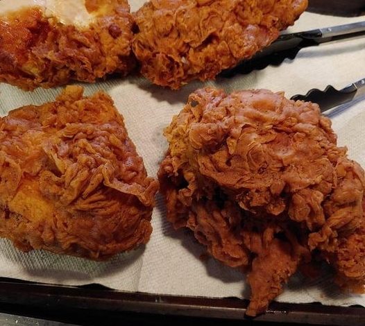Place the cooked chicken on a paper-lined plate to remove excess oil.
