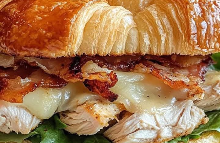 Here’s a mouthwatering Turkey Melt Sandwich on a Flaky Croissant, packed with cheesy goodness and savory turkey! 🦃🥐🧀