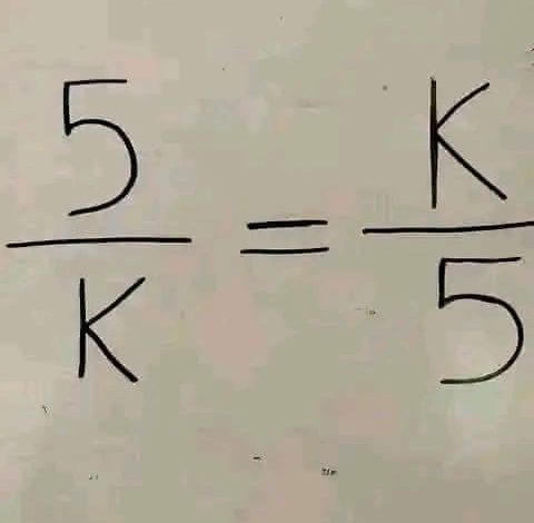 Presentation: The image displays a seemingly straightforward mathematical equation, “5/K = K/5.” At first glance, the equation presents a symmetry that is both appealing and perplexing. The structure of the equation is simple, yet solving for K requires a bit more than elementary arithmetic; it requires an understanding of how variables interact within fractions and equations. The equation is a classical example of a variable-based puzzle where one seeks to find the value of K that satisfies the balance.