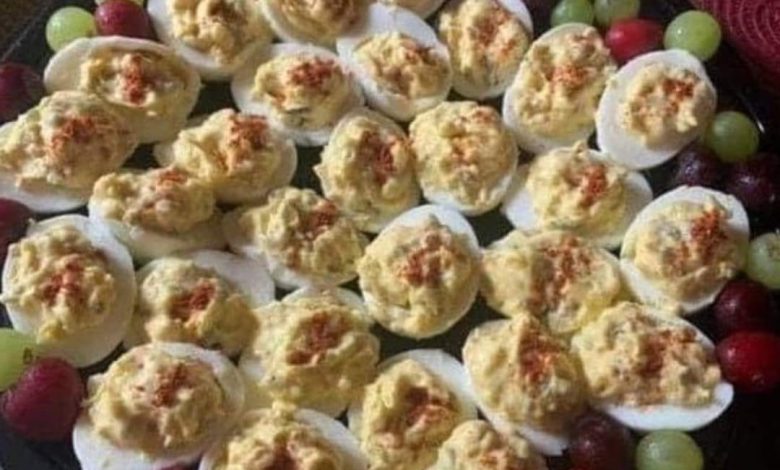 Puree the yolks with the pulp. Add mayonnaise, cream, mustard, lemon juice and parsley; Mix well. Add chopped egg whites, bacon, cheese, and chives; Mix well.