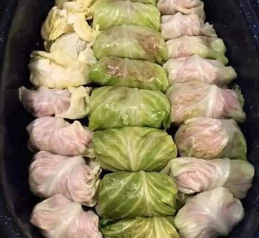 Place about 1/4 cup of the meat mixture in the center of each leaf, roll up and place in the glass. Place the roll on one side in the baking dish.